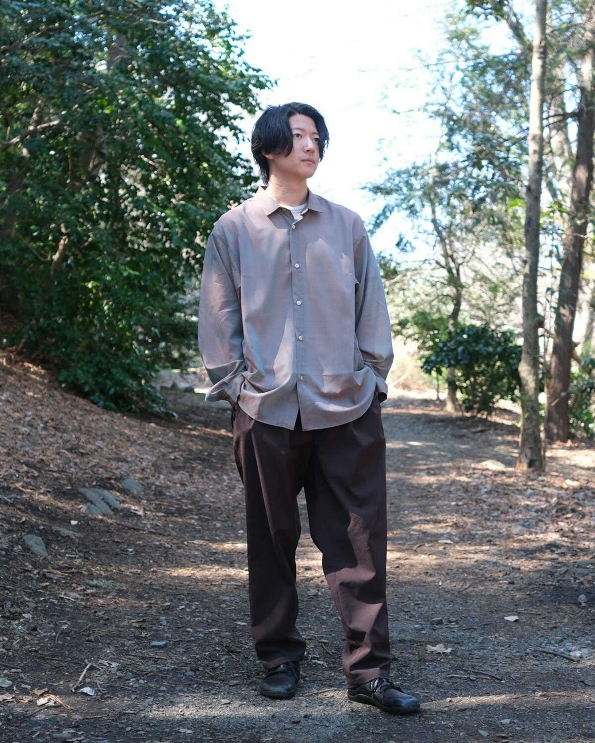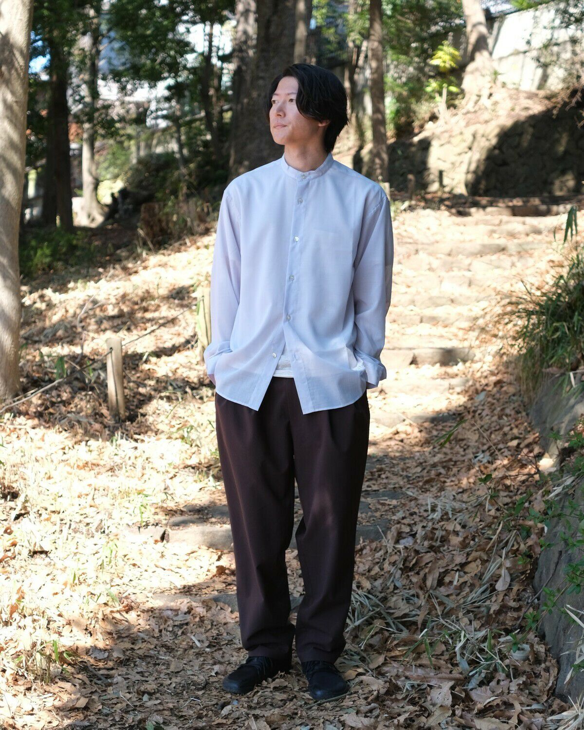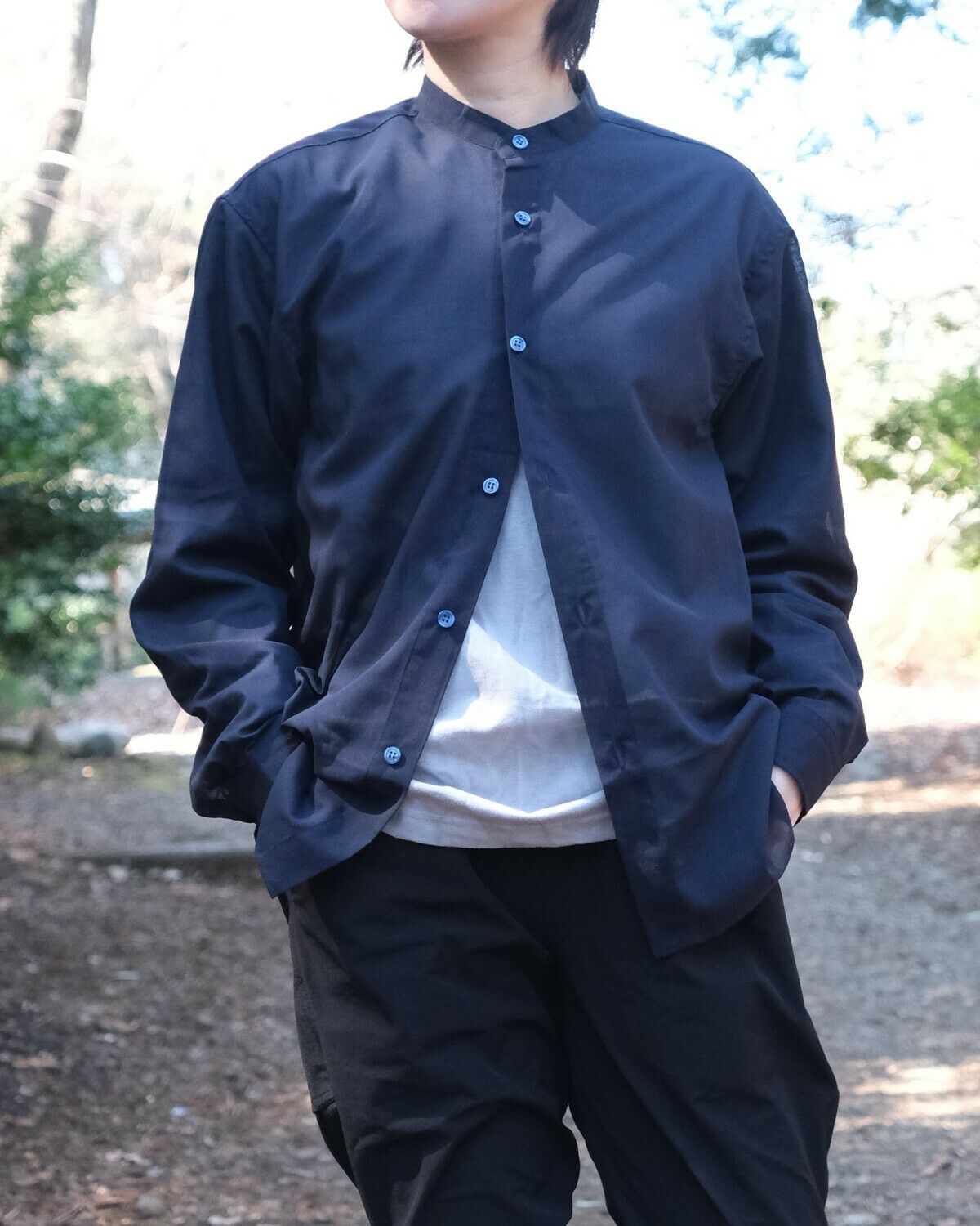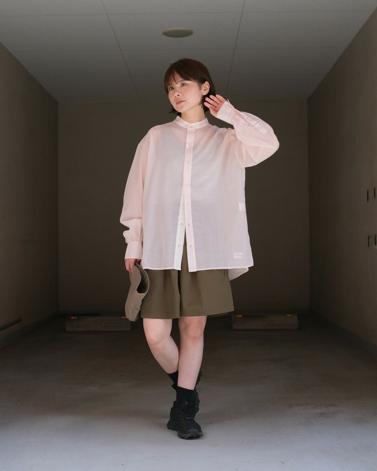 BLACK BRICK / Air Hybrid Merino Band Collar Shirt