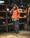 【サイズ感・シルエット】ワイドすぎず、ほどよいゆとりのあるサイズ感。着丈は裾を絞ることを前提とした長めの設定。袖丈も十分な長さを確保しています。