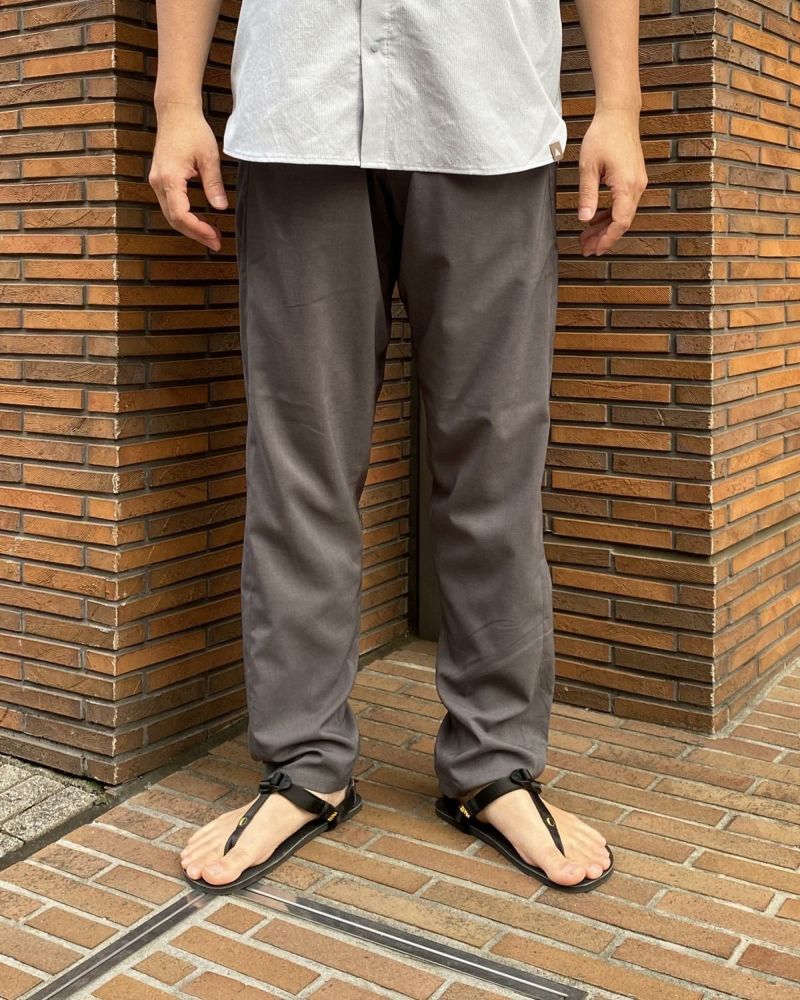 シルエットはNrucのフラッグシップモデル・GORDON PANTSとは真逆のリラックスシルエット。お尻から太腿あたりまではゆったり目に設定し、登山時の足捌きの邪魔にならないよう足元にかけてはしっかりテーパードをかけました。ウエストはゴムと紐を配し、あらゆる体型をカバーします。