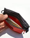 本体サイズと前面のファスナーの位置が、カードなどを入れた時に出し入れしやすい深さと高さ設定され、いちいち中身を取り出さなくても中身の確認が可能。