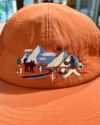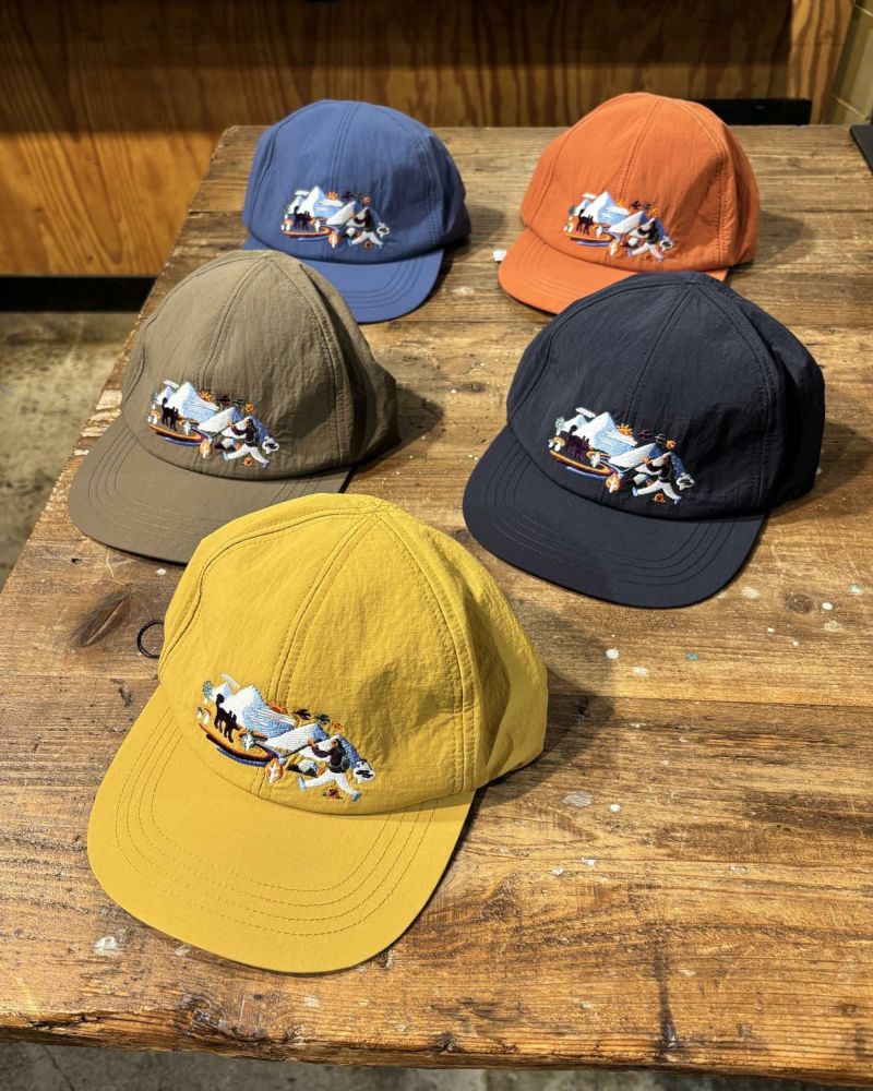 環境に配慮したサステナブルナイロン素材の、フロントにはかわいい山の刺繡がはいったキャップです。裏地はメッシュ仕様で通気性を確保。