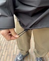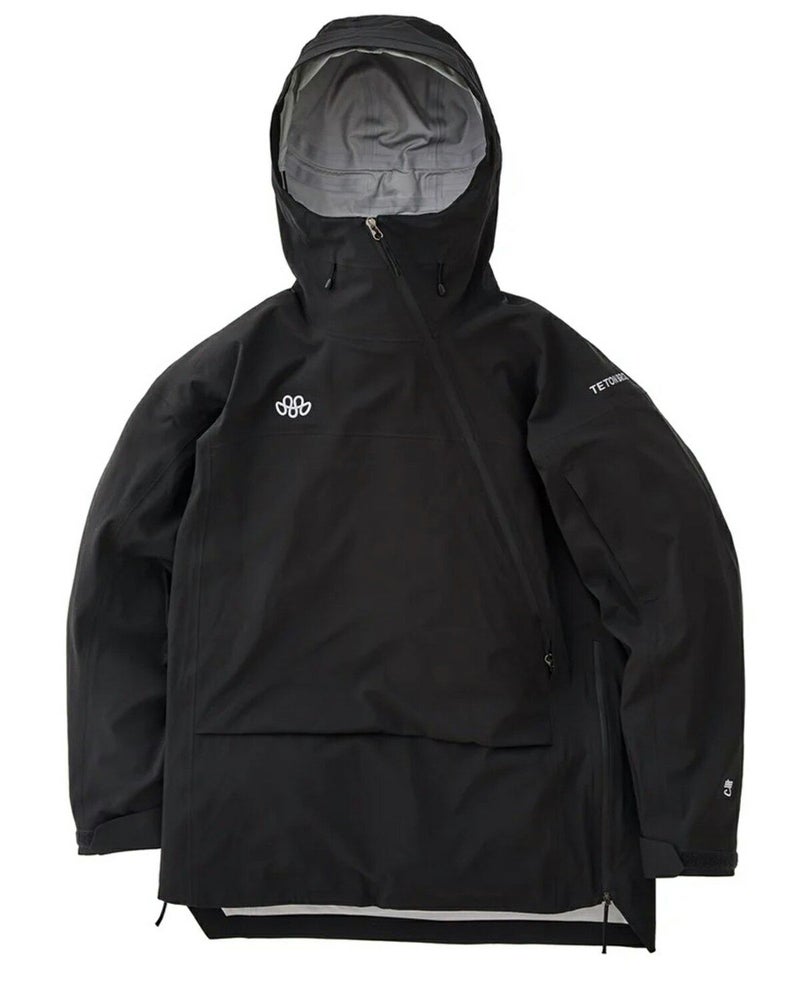 フロントのアングルジッパーはTSURUGI JACKETから継承。肩の関節可動域を損なわない立体裁断も共通です。長めの丈は欧米のトレンドを反映したもので、ハイクアップでスムーズに足上げできるように両サイドにジッパーを配置しています。他のシェルと同様、全体的にロープロファイルでレーザーカットや超音波圧着を多用した仕様。TETON BROS.の新しい挑戦が、ここから始まります。