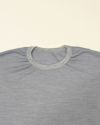 一枚でも安心して着用可能なゆったりめのシルエット。プリントや刺繍は入れず、左脇にピスネームを付けたのみのミニマルデザイン。